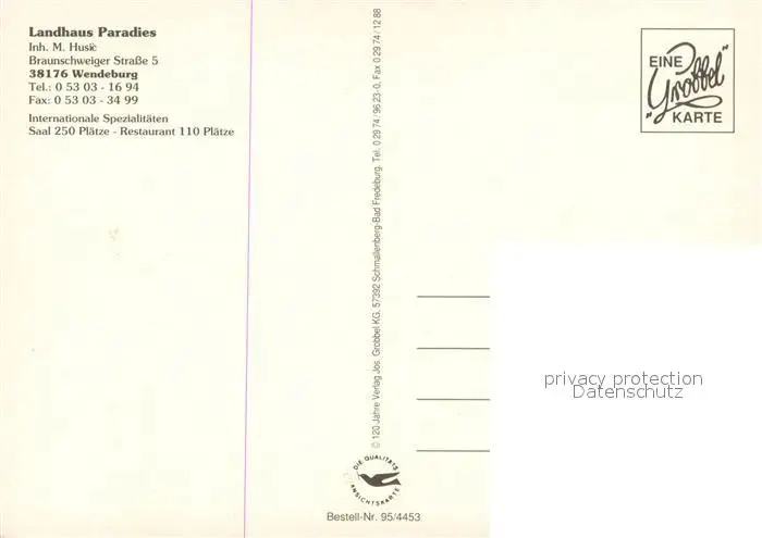 Wendeburg Landhaus Paradies Restaurant Festsaal Wendeburg postalisch nicht gelaufen nach 1965 Erhaltung siehe scans [FriedD77] Frierer