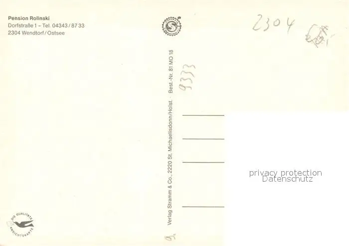 Wendtorf Pension Rolinski Gaestezimmer Fruehstuecksraum Wendtorf postalisch nicht gelaufen nach 1965 Erhaltung siehe scans [FriedD77] Frierer