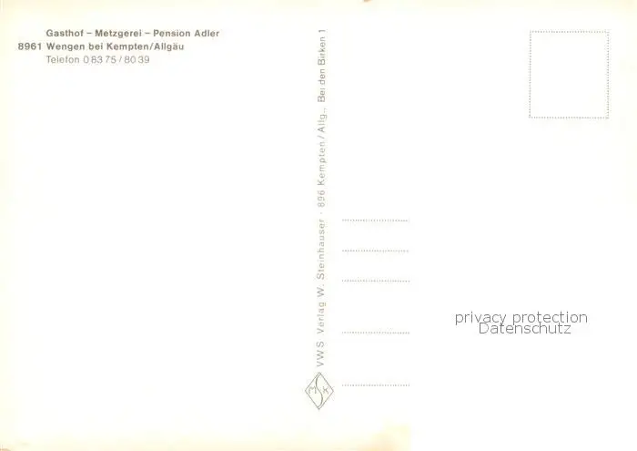 Wengen_Kempten_Allgaeu Gasthof Metzgerei Adler Gastraeume Wengen_Kempten_Allgaeu postalisch nicht gelaufen nach 1965 Erhaltung siehe scans [FriedD77] Frierer