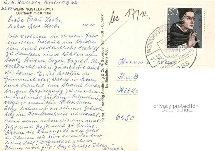 Wenningstedt_Sylt Dorfteich Kirche Wenningstedt_Sylt postalisch gelaufen nach 1965 Erhaltung siehe scans [KathaD81] Kathoren