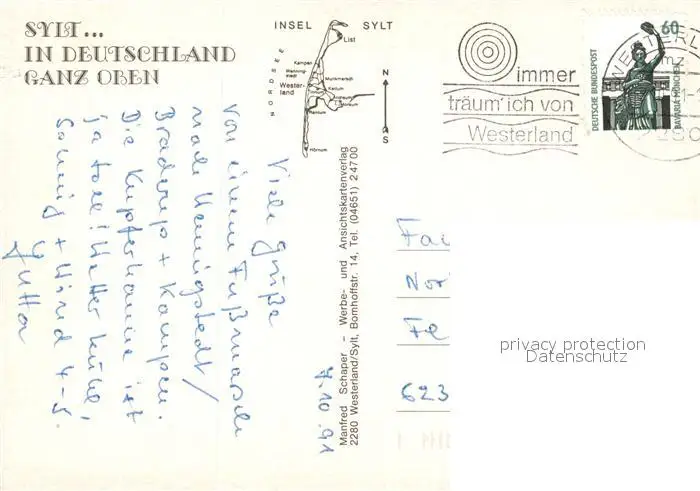Wenningstedt_Sylt Leuchtturm Strand Wenningstedt_Sylt postalisch gelaufen 1991 Erhaltung siehe scans [LiesaD40] LiesID40