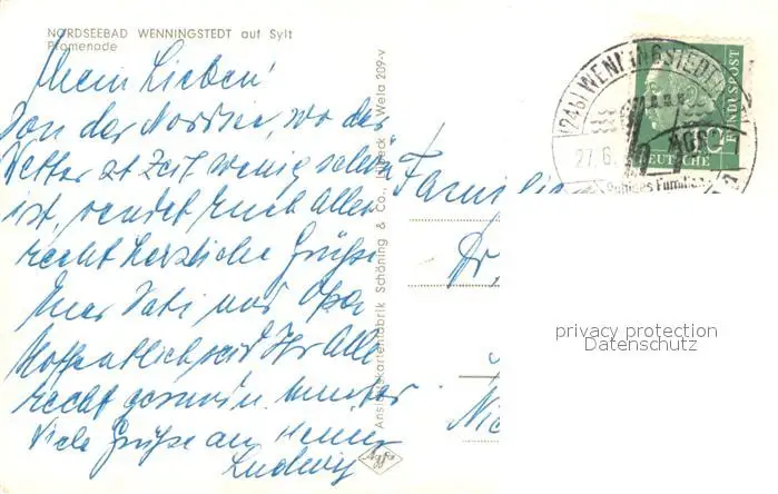 Wenningstedt_Sylt Promenade Nordseebad Strand Wenningstedt_Sylt postalisch gelaufen 1955 Erhaltung siehe scans [FriedD77] Frierer