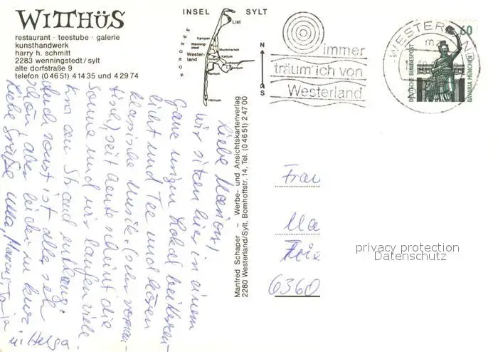 Wenningstedt_Sylt Restaurant Teestube Galerie Witthues Wenningstedt_Sylt postalisch gelaufen nach 1965 Erhaltung siehe scans [KathaD81] Kathoren