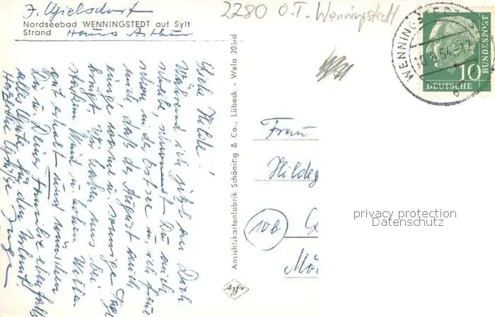 Wenningstedt_Sylt Strand Kueste Wenningstedt_Sylt postalisch gelaufen 1954 Erhaltung siehe scans [WerneD78] WernPID7