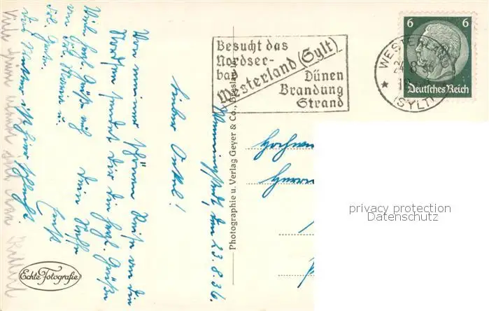 Wenningstedt_Sylt Strandpartien Wenningstedt_Sylt postalisch gelaufen 1936 Erhaltung siehe scans [WerneD78] WernPID7