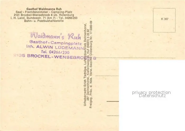 Wensebrock_Rotenburg_Wuemme Gasthof Waldmanns Ruh Fliegeraufnahme Wensebrock_Rotenburg postalisch nicht gelaufen nach 1965 Erhaltung siehe scans [FriedD77] Frierer