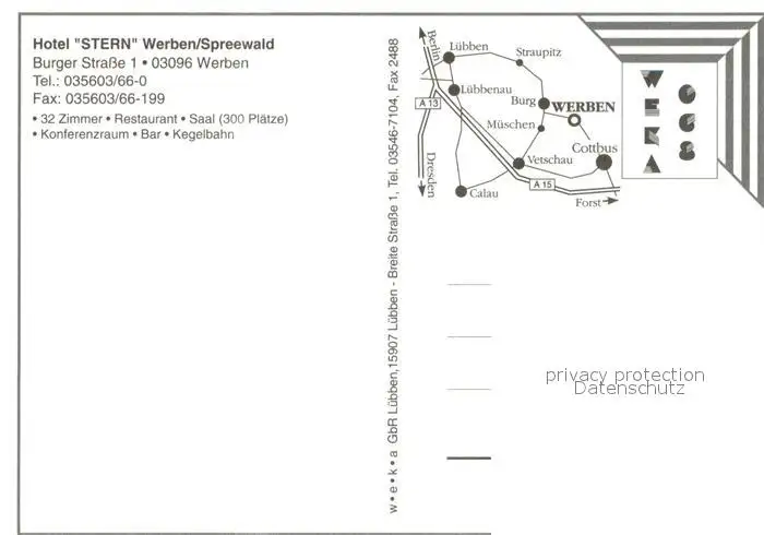 Werben_Niederlausitz Hotel Stern im Spreewald Werben_Niederlausitz postalisch nicht gelaufen nach 1965 Erhaltung siehe scans [LiesaD40] LiesID40