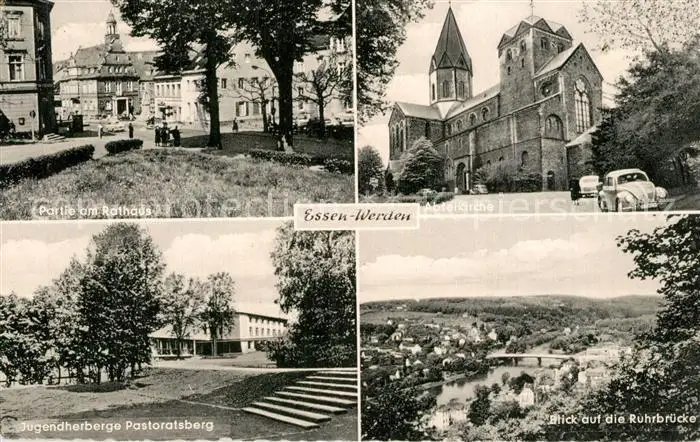 AK / Ansichtskarte Werden_Ruhr Rathaus Abteikirche Jugendherberge Pastoralsberg Ruhrbruecke Werden Ruhr