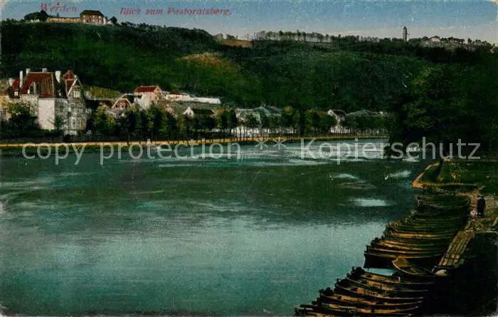 AK / Ansichtskarte Werden_Ruhr_Essen Blick zum Pastoratsberg Restaurant Zur Plate Uferpartie an der Ruhr Feldpost