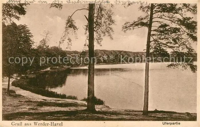 Werder_Havel Uferpartie am Fluss Werder Havel postalisch gelaufen 1935 Erhaltung siehe scans [FriedD77] Frierer