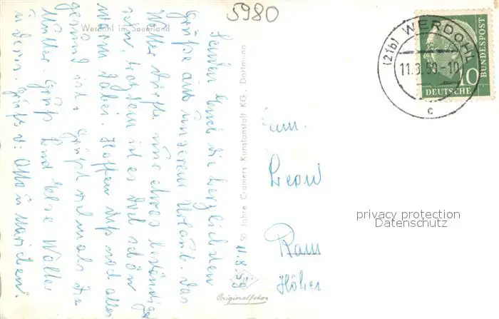 Werdohl Ortsansicht mit Bruecke Werdohl postalisch gelaufen 1959 Erhaltung siehe scans [WerneD78] WernPID7