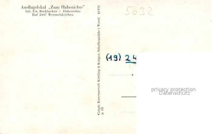 Wermelskirchen Ausflugslokal Zum Habenichts Wermelskirchen postalisch nicht gelaufen 1953 Erhaltung siehe scans [WerneD78] WernPID7