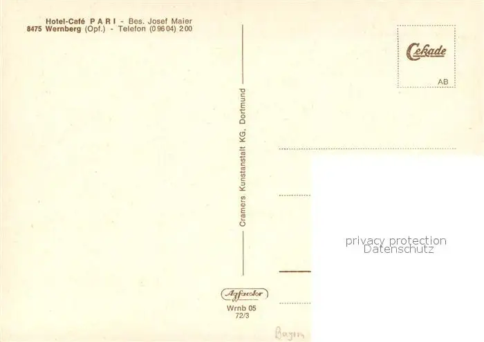 Wernberg-Koeblitz Hotel Café Parin Terrasse Wernberg-Koeblitz postalisch nicht gelaufen 1972 Erhaltung siehe scans [FriedD77] Frierer