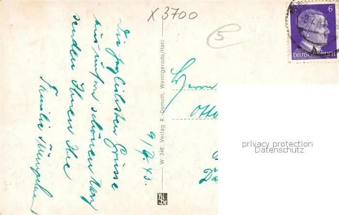 Wernigerode-Hasserode Blick ins Papental Wernigerode-Hasserode postalisch gelaufen 1941 Erhaltung siehe scans [WerneD78] WernPID7