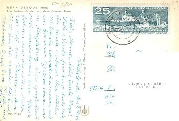 Wernigerode_Harz Alte Fachwerkbauten Kleinstes Haus Wernigerode Harz postalisch gelaufen 1971 Erhaltung siehe scans [KathaD81] Kathoren