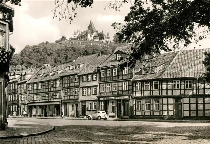 Wernigerode_Harz An der Schoenen Ecke Fachwerkhaeuser Schloss Wernigerode Harz postalisch nicht gelaufen 1963 Erhaltung siehe scans [FriedD77] Frierer