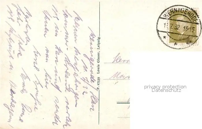 Wernigerode_Harz Blick vom Eisenberg Wernigerode Harz postalisch gelaufen 1932 Erhaltung siehe scans [LiesaD40] LiesID40