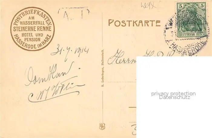 Wernigerode_Harz Die Steinerne Renne mit dem Hotel Wasserfall Wernigerode Harz postalisch gelaufen 1914 Erhaltung siehe scans [WerneD78] WernPID7