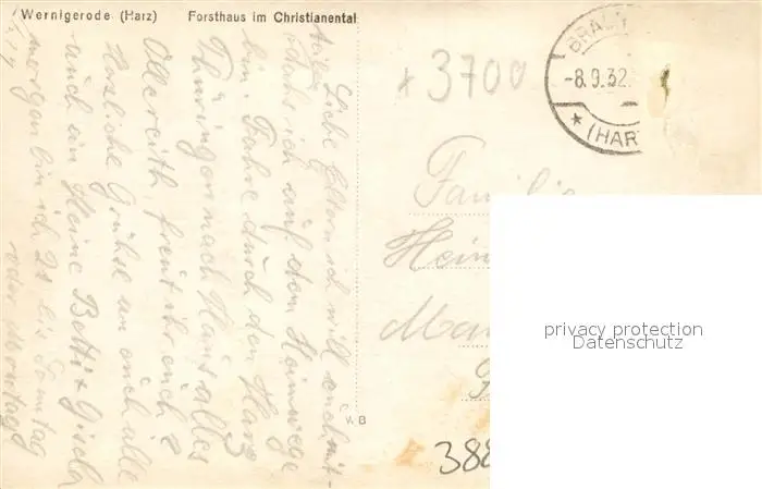 Wernigerode_Harz Forsthaus im Christanental Wernigerode Harz postalisch gelaufen 1932 Erhaltung siehe scans [WerneD78] WernPID7