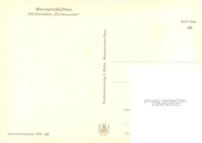 Wernigerode_Harz HO Gaststaette Christianental Wernigerode Harz postalisch nicht gelaufen nach 1965 Erhaltung siehe scans [FriedD77] Frierer