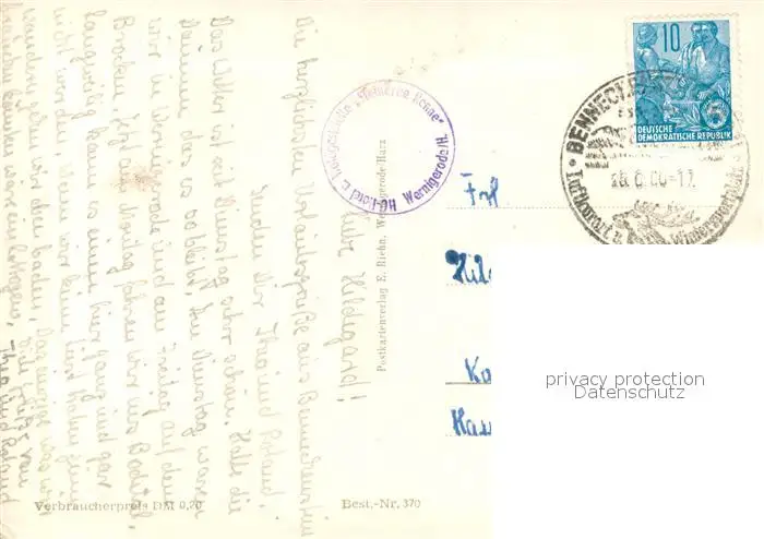 Wernigerode_Harz HO Hotel Steinerne Renne Wernigerode Harz postalisch gelaufen 1960 Erhaltung siehe scans [WerneD78] WernPID7
