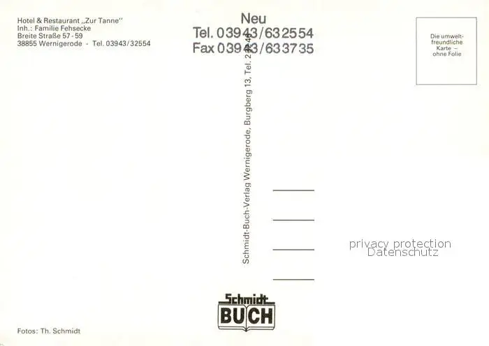 Wernigerode_Harz Hotel Restaurant zur Tanne Hotelbar Fremdenzimmer Rathaus Wernigerode Harz postalisch nicht gelaufen nach 1965 Erhaltung siehe scans [FriedD77] Frierer