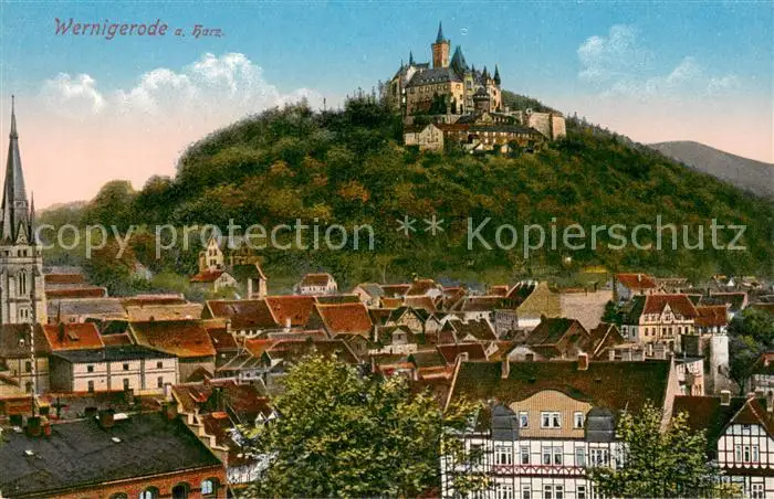 Wernigerode_Harz Stadtbild mit Schloss Wernigerode Harz postalisch nicht gelaufen ca. 1915 Erhaltung siehe scans [FriedD77] Frierer