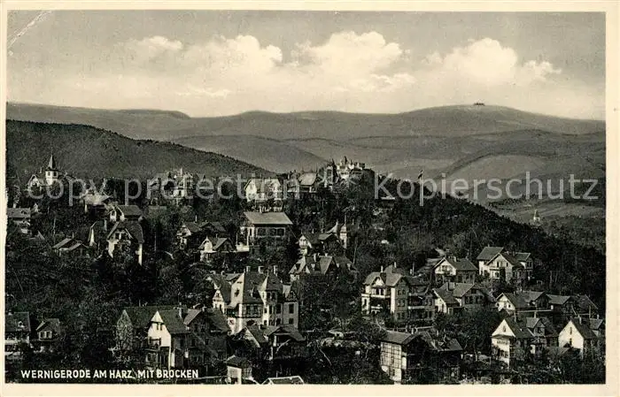 Wernigerode_Harz Stadtblick mit Brocken Wernigerode Harz postalisch nicht gelaufen 1921-1965 Erhaltung siehe scans [WerneD78] WernPID7