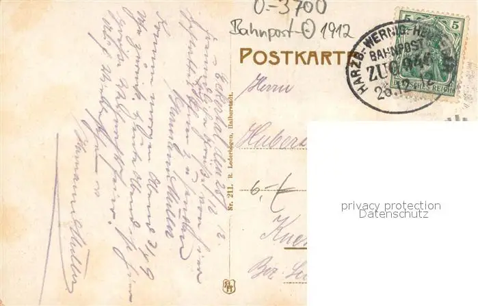 Wernigerode_Harz Stadtpanorama mit Blick zum Schloss Wernigerode Harz postalisch gelaufen 1912 Bahnpost Erhaltung siehe scans [FriedD77] Bahnpost Frierer