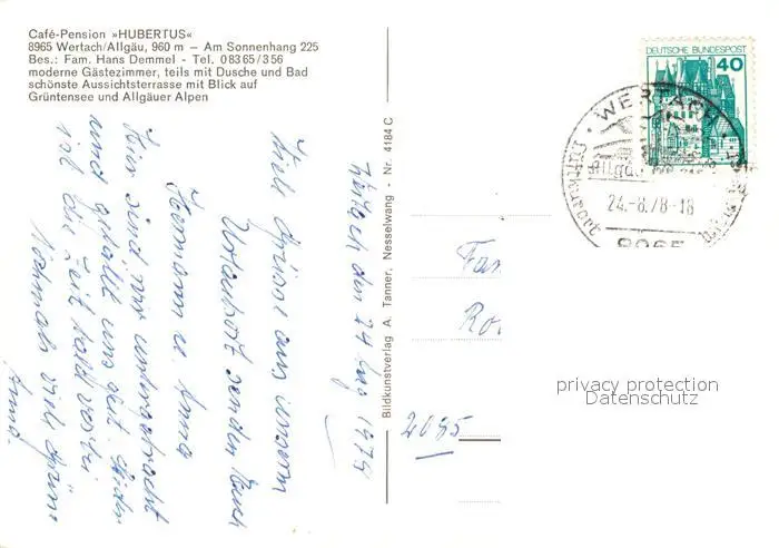 Wertach Cafe-Pension Hubertus Wertach postalisch gelaufen 1978 Erhaltung siehe scans [PaolaD17] PaolPID1
