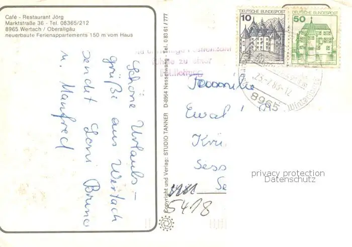 Wertach Cafe-Restaurant Joerg m. Schwimmbad Minigolfplatz Alpvieh Gruenengipfel Wertach postalisch gelaufen 1983 Erhaltung siehe scans [LiesaD40] LiesID40