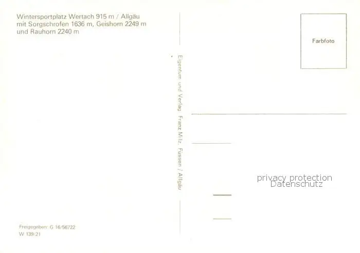 Wertach Fliegeraufnahme mit Sorgschrofen Geishorn und Rauhorn Wertach postalisch nicht gelaufen nach 1965 Erhaltung siehe scans [WerneD78] WernPID7