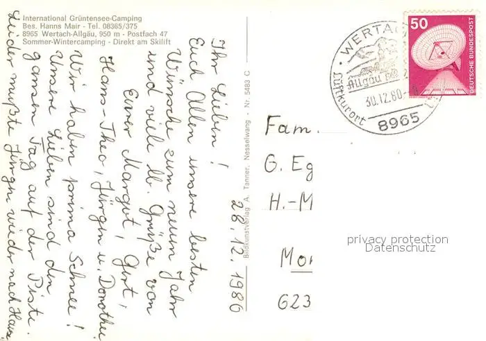 Wertach Gruentensee Camping zur Weihnachtszeit Christbaum Nachtaufnahme Wertach postalisch gelaufen 1980 Erhaltung siehe scans [FriedD77] Frierer