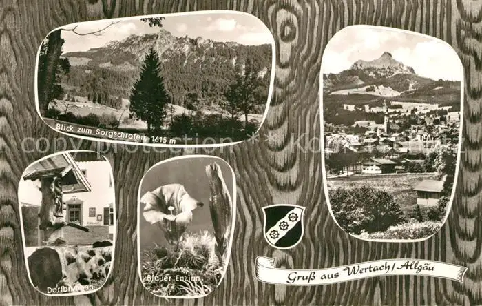 Wertach Landschaftspanorama Sorgschrofen Dorfbrunnen Blauer Enzian Hoehenluftkurort Wertach postalisch nicht gelaufen 1921-1965 Erhaltung siehe scans [FriedD77] Frierer