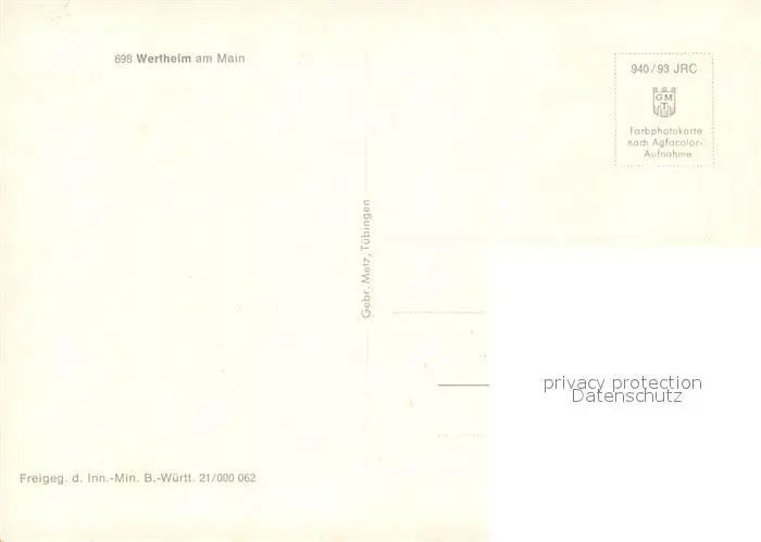 Wertheim_Main Fliegeraufnahme Wertheim Main postalisch nicht gelaufen nach 1965 Erhaltung siehe scans [LiesaD40] LiesID40