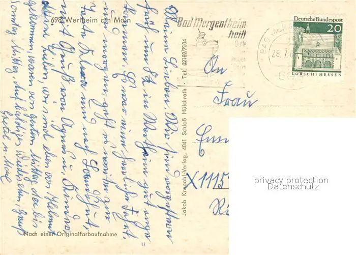 Wertheim_Main Fliegeraufnahme Wertheim Main postalisch gelaufen 1968 Erhaltung siehe scans [WerneD78] WernPID7