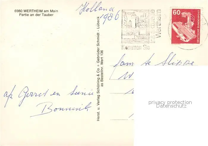 Wertheim_Main Panorama Tauber Wertheim Main postalisch gelaufen 1986 Erhaltung siehe scans [KathaD81] Kathoren