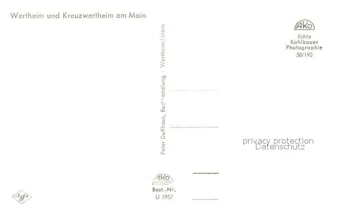 Wertheim_Main Panorama mit Kreuzwertheim Wertheim Main postalisch nicht gelaufen 1958 Erhaltung siehe scans [FriedD77] Frierer