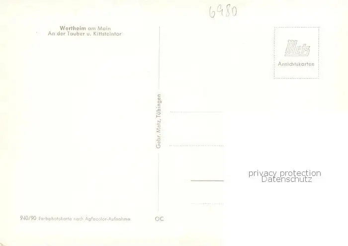 Wertheim_Main Partie an der Tauber u. Kittsteintor Wertheim Main postalisch nicht gelaufen nach 1965 Erhaltung siehe scans [LiesaD40] LiesID40