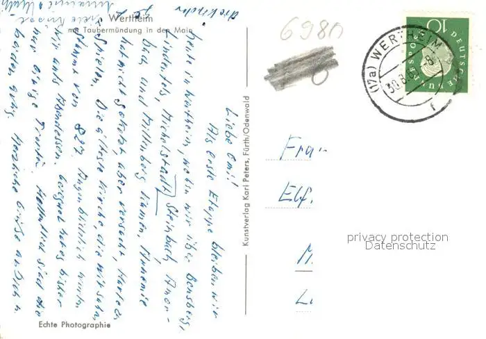Wertheim_Main Taubermuendung Wertheim Main postalisch gelaufen 1960 Erhaltung siehe scans [NatalD47] NataID47