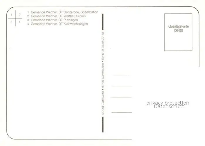AK / Ansichtskarte Werther_Nordhausen Guenzenrode Sozialstation Werther Schloss Puetzingen Kleinwechsungen Werther Nordhausen