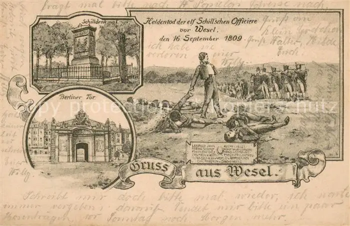 AK / Ansichtskarte Wesel_Rhein Heldentod d. elf Schillschen Offiziere Feldpost Wesel Rhein