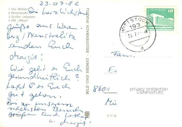 Wesenberg_Mecklenburg Wohnsiedlung Die Wellen Mittelstrasse Grosser Labussee MS Moewe Fahrgastschiff Wesenberg_Mecklenburg postalisch gelaufen 1982 Erhaltung siehe scans [FriedD77] Frierer