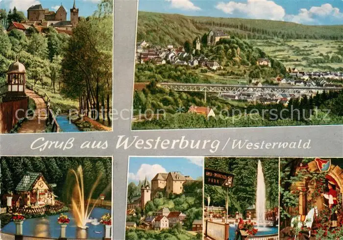 Westerburg_Westerwald Stadtpanorama Bruecke Schloss Maerchenpark Westerburg_Westerwald postalisch nicht gelaufen nach 1965 Erhaltung siehe scans [FriedD77] Frierer
