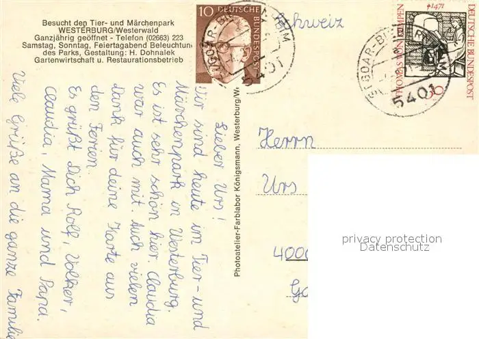 Westerburg_Westerwald Tier- und Maerchenwald Westerburg_Westerwald postalisch gelaufen nach 1965 Erhaltung siehe scans [LiesaD40] LiesID40