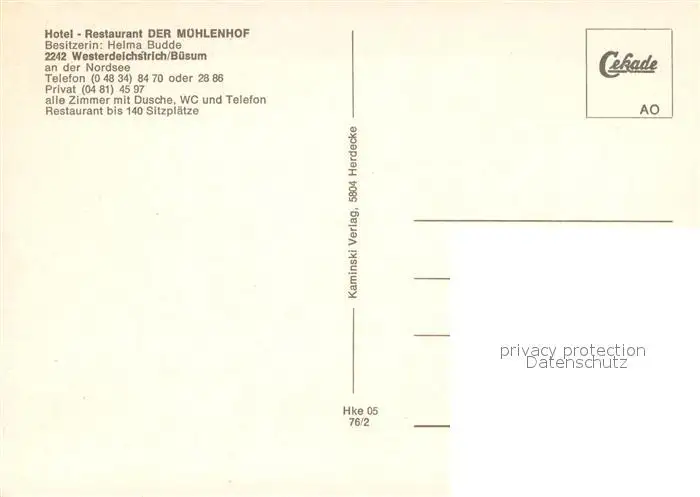 Westerdeichstrich Restaurant-Hotel Der Muehlenhof Aussenansicht Westerdeichstrich postalisch nicht gelaufen nach 1965 Erhaltung siehe scans [LiesaD40] LiesID40