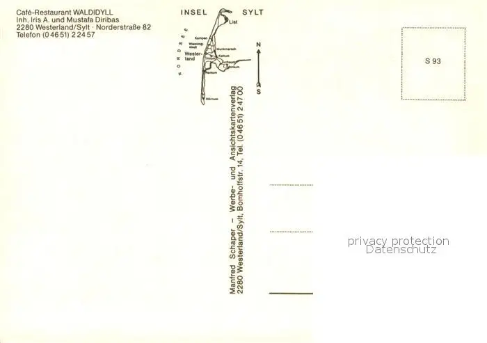 Westerland_Sylt Cafe Restaurant Waldidyll Gastraeume Westerland_Sylt postalisch nicht gelaufen nach 1965 Erhaltung siehe scans [WerneD78] WernPID7