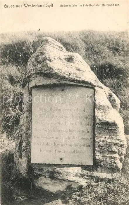 Westerland_Sylt Gedenkstein Friedhof Heimatlose Westerland_Sylt postalisch nicht gelaufen 1921-1965 Erhaltung siehe scans [KathaD81] Kathoren