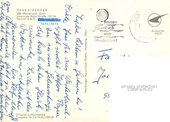 Westerland_Sylt Haus Kirchner Fliegeraufnahme Westerland_Sylt postalisch gelaufen nach 1965 Erhaltung siehe scans [FriedD77] Frierer