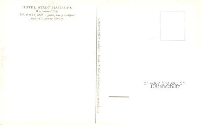 Westerland_Sylt Hotel Stadt Hamburg Restaurant Westerland_Sylt postalisch nicht gelaufen nach 1965 Erhaltung siehe scans [WerneD78] WernPID7